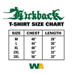 Printed on a heavy 100% cotton tubular t-shirt (195 GSM); 2.5” double stitch thick collar. Comes with a custom damask woven Kickback size label.